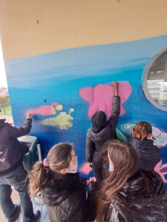Les 21, 22 et 23 février, 22 élèves de 6e ont bravé les intempéries pour travailler avec Zag, artiste urbain, sur une fresque fantastique. Le thème des monstres, qui a été travaillé cette année scolaire dans plusieurs disciplines, trouve dans cette fresque, une réalisation graphique, qui met en scène la richesse créative de nos graffeurs en herbe.