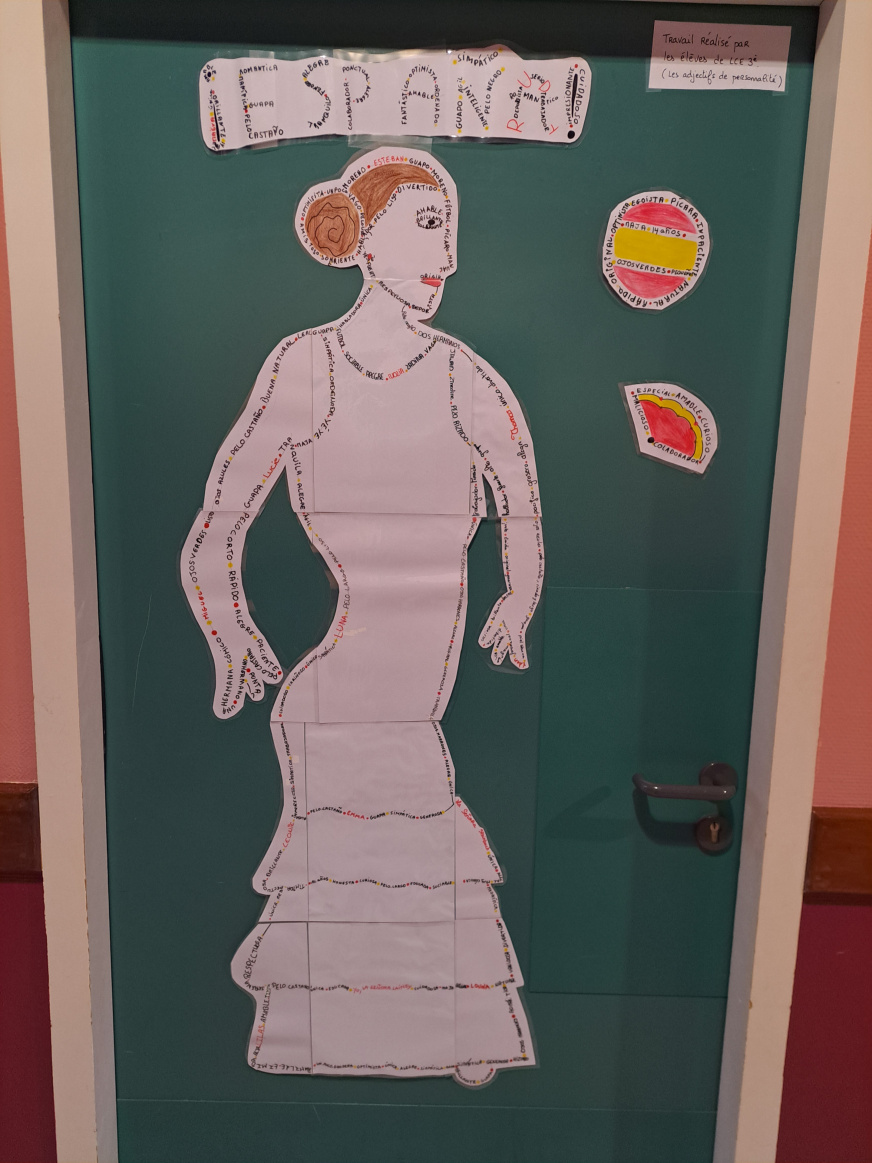 Este año, hemos decorado nuestra puerta : hemos realizado una bailarina de flamenco.