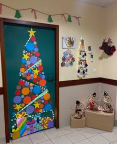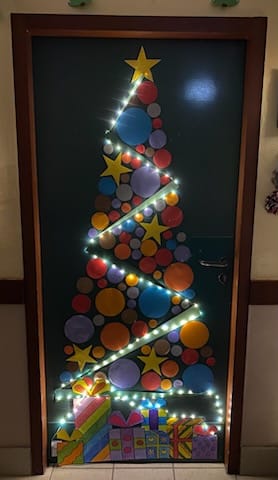 Après avoir collecté chez eux ou autour de chez eux le matériel nécessaire, chacun a participé à la confection des éléments décoratifs qui s’appuient sur la conception et la réalisation de figures géométriques : triangles rectangles, cercles, étoiles.