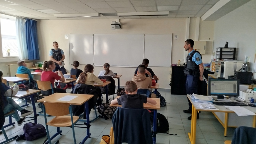 Deux gendarmes, messieurs Visage et Hardy, de la gendarmerie de Landivisiau ont accepté de venir à la rencontre des élèves du dispositif le 2 mai afin d’expliquer leur métier. Les élèves avaient de nombreuses questions à leur poser. Ils nous ont ainsi appris que la gendarmerie de Landivisiau compte 17 gendarmes : 3 femmes et 14 hommes. Les deux gendarmes ont présenté leur parcours et les raisons qui les ont poussées à s’engager dans ce métier. Nous avons découvert qu’il s’agit d’un métier de relation humaine, qu’aucune journée n’est la même et que le temps de travail peut aller de 45 à 60 heures par semaine. Les missions sont très variées : enquêtes judiciaires, prises de plaintes, prévention en allant dans les établissements scolaires, sanction en cas de contrôles routiers, mise en garde vue… Les élèves ont apprécié ce moment d’échange où les gendarmes ont répondu à toutes leurs questions avec beaucoup de pédagogie et de gentillesse.