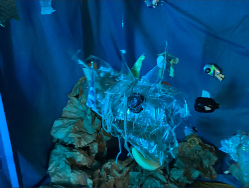 Suite à cette représentation a commencé un travail pour répondre à la question : « À quoi ressemblent des poissons qui avalent trop de plastiques ? Sur les 128 poissons réalisés, une cinquantaine de spécimens ont été mis en scène dans une installation pour recréer les fonds marins … lumière bleue, et dispositif pour faire danser les poissons.