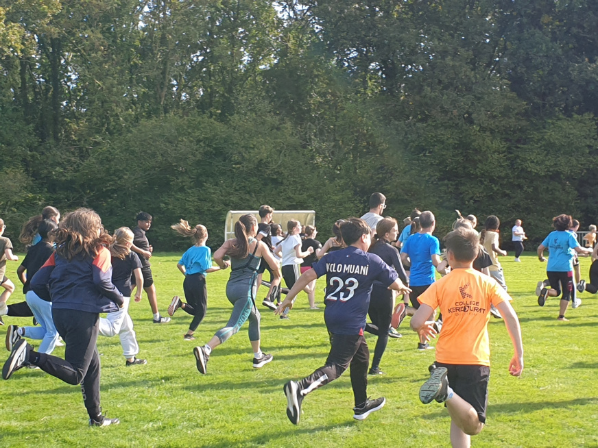 Le mardi 07 octobre 2025, les enseignantes d’EPS, les ambassadeurs de 4e / 3e, les élèves de 6e / 5e invitent les élèves des écoles primaires de Landivisiau, Guiclan, Saint Servais et Lampaul Guimiliau à courir dans le bois de Coat Meur pour le traditionnel cross d’automne. La course se conclut par un grand final où les personnels du collège jouent des coudes pour finir en vainqueurs face à leurs jeunes et énergiques concurrents.