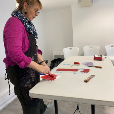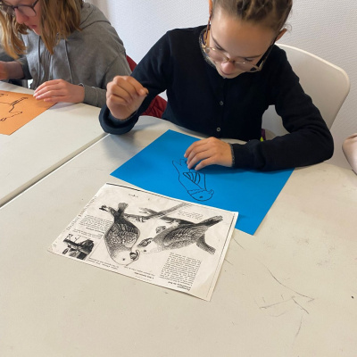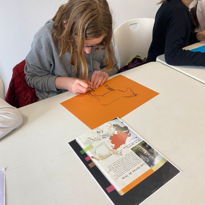 Dans le cadre du Festival « Moi les mots », les élèves du dispositif ULIS sont allés à la rencontre de Julia Chausson le jeudi 11 décembre à la nouvelle bibliothèque de Landivisiau. Il s’agissait d’échanger avec l’illustratrice sur les albums étudiés en classe. Julia Chausson leur a expliquer sa technique de gravure sur plaque et la manière dont elle fait ses ouvrages. Elle a parlé de ses collaborations avec les éditeurs, sa sœur avec laquelle elle organise des spectacles… Elle a publié une trentaine de livres. Sous la supervision et le regard bienveillant de l’illustratrice, les élèves ont pu eux aussi réaliser leurs propres gravures mais sur du polystyrène. Ils ont pu ensuite enduire eux-mêmes leur plaque avec de l’encre et réaliser une impression de leur travail.
