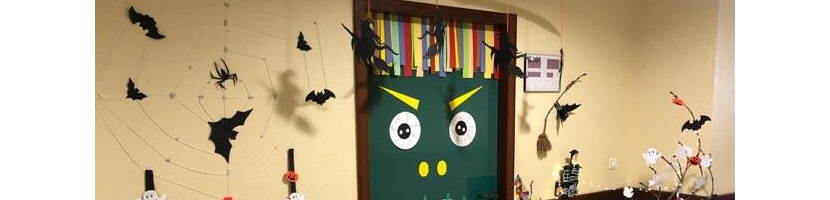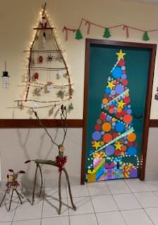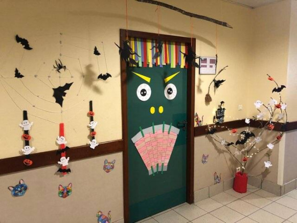 La porte de classe….ou comment chacun contribue à une œuvre collective : elle embellie l’espace tout en accueillant les élèves de manière…..généralement chaleureuse…..
